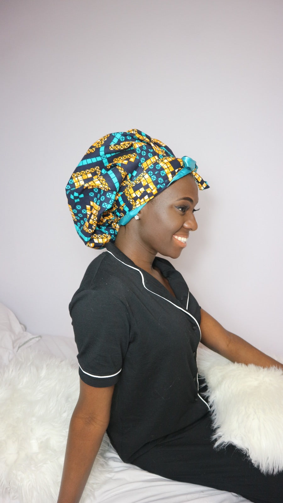 African Print Satin Lined Bonnet & Straps