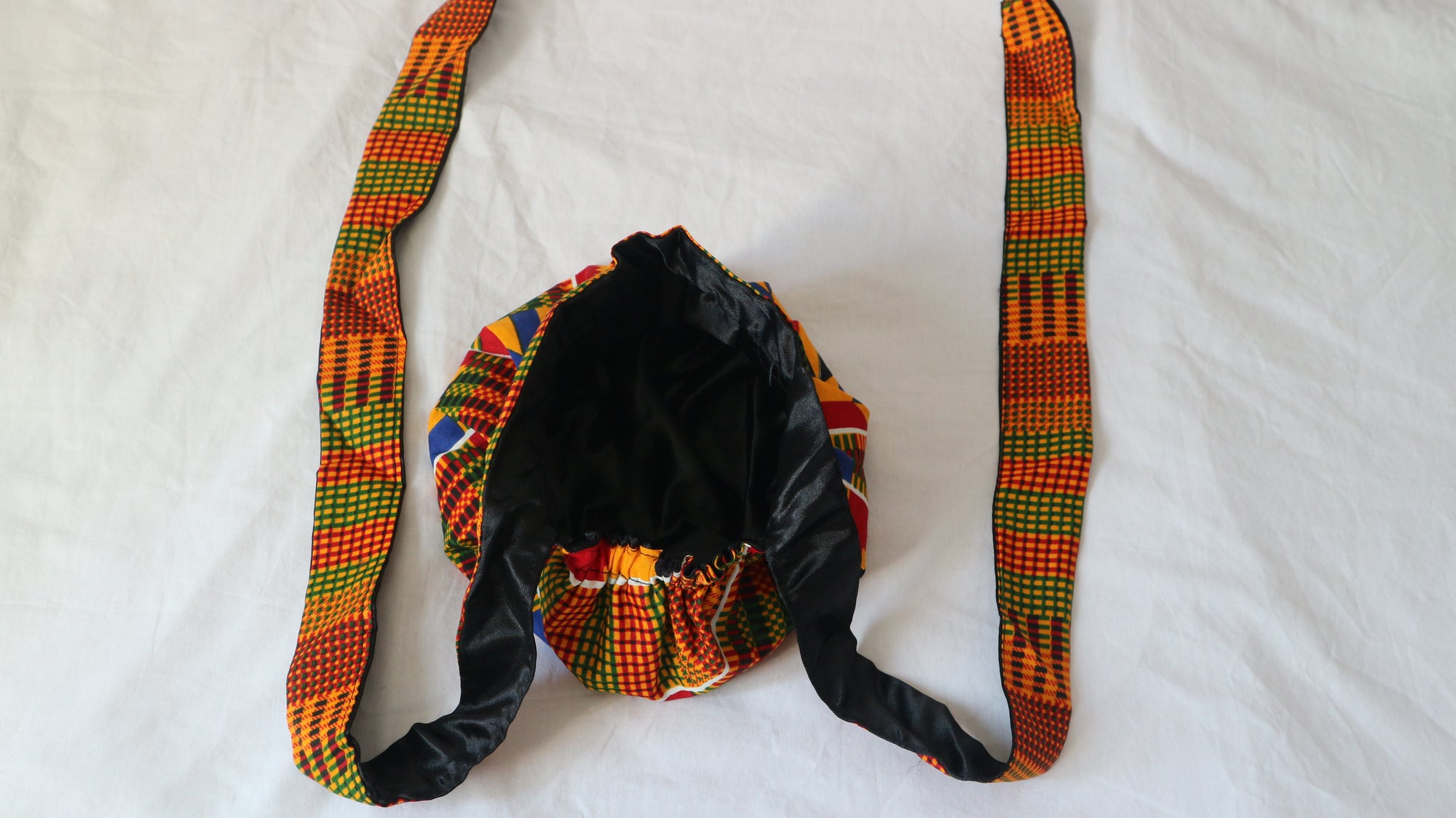 This Bonnet with Straps is perfect for children, as it will protect their hair. The bonnet stays on your head throughout the night, as you can use the straps to tie it.